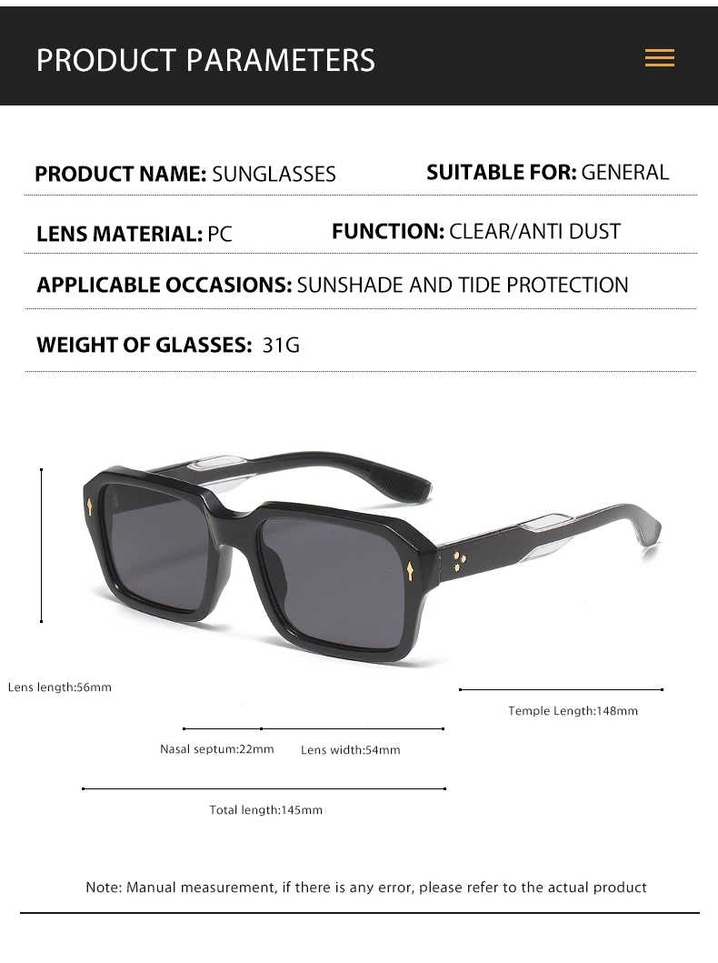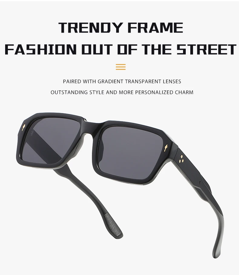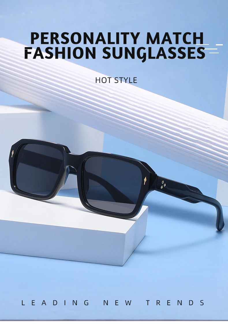 2024 New Square Sunglasses Personalized Sunscreen Ink High Quality Men's Retro Black Classic Rivet Fashion Glasses