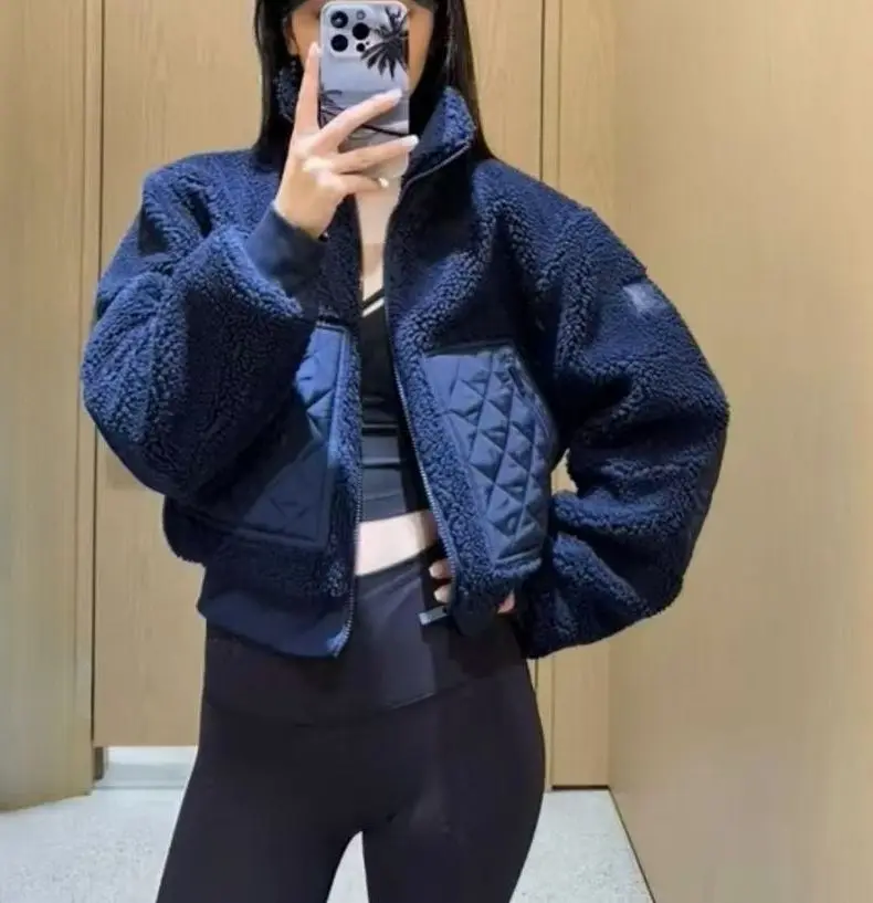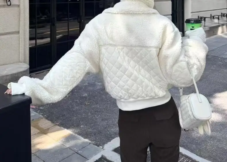 2025 Autumn New Lamb Plush Warm Coat Fashion Stand-up Collar Zipper Winter Jacket Women Outerwear High Waist Thicken Coats