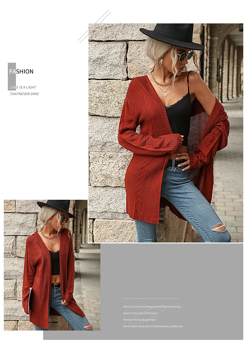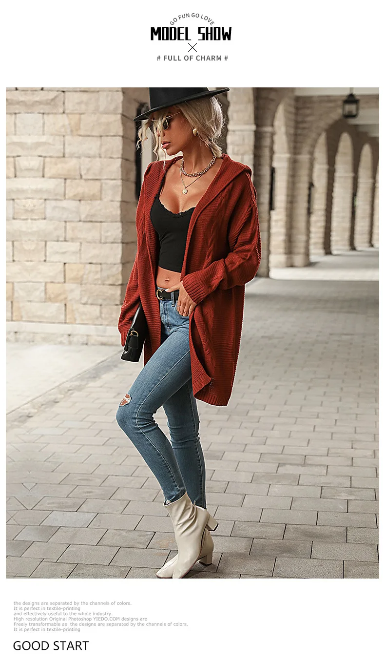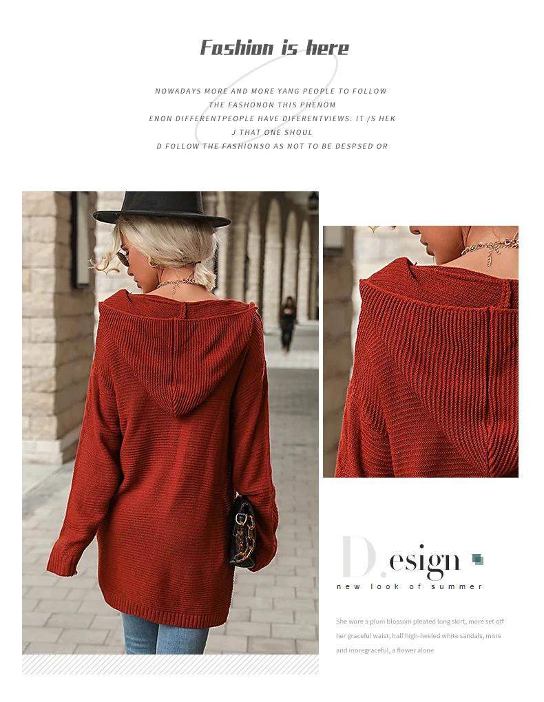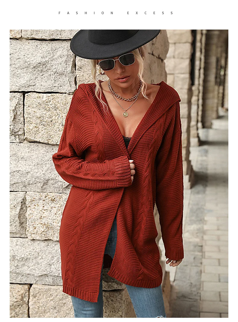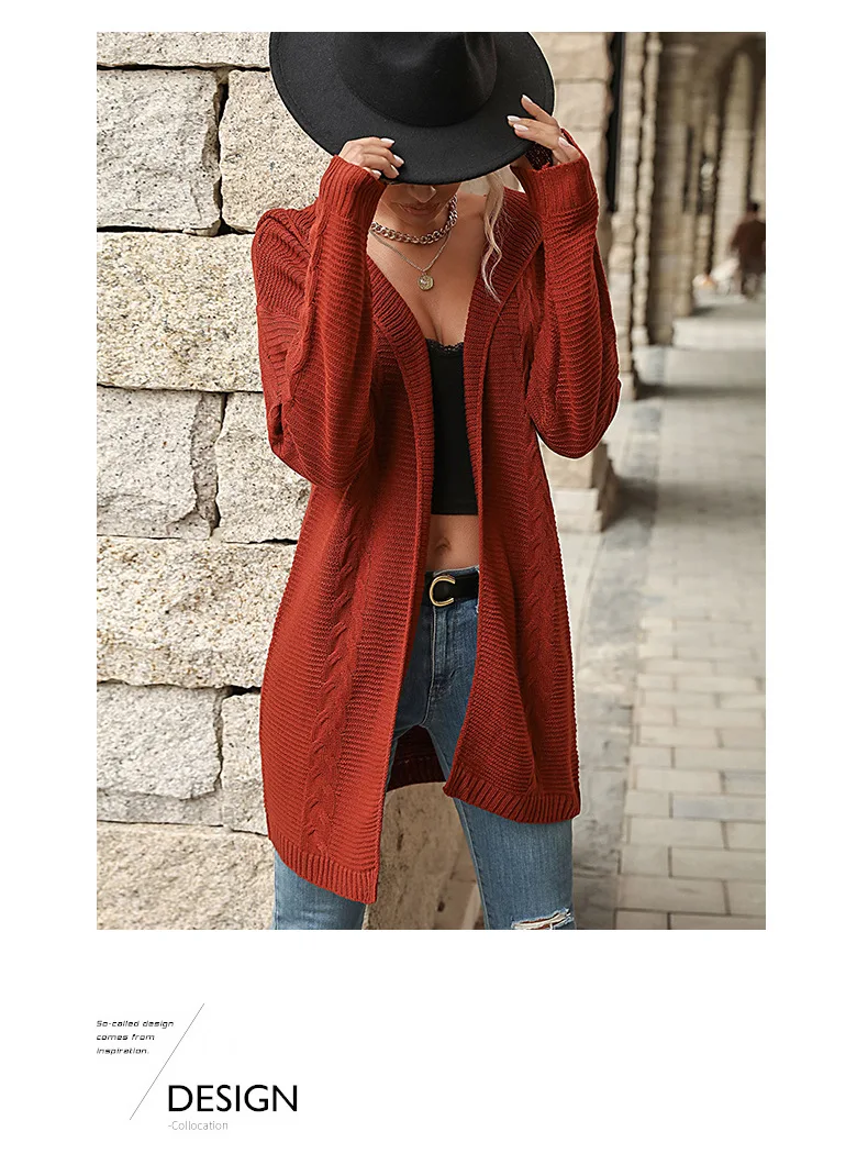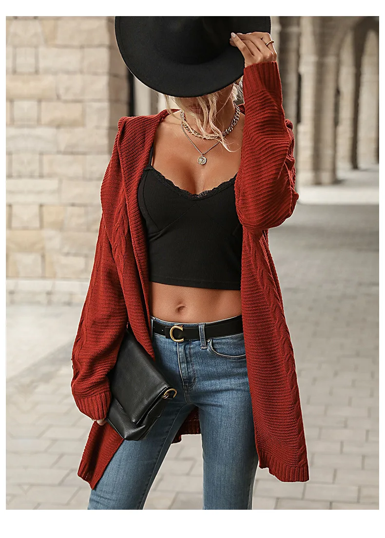 2025 Autumn Red Loose Long Sweater Cardigan Women Long Sleeve Casual Knit Cardigan Winter Lady Hooded Knitted Coat Outwears