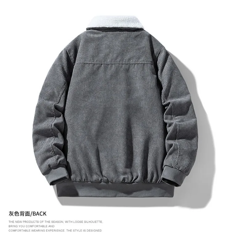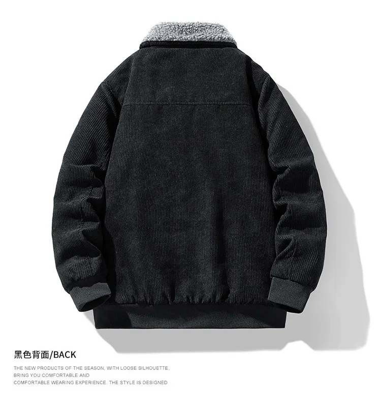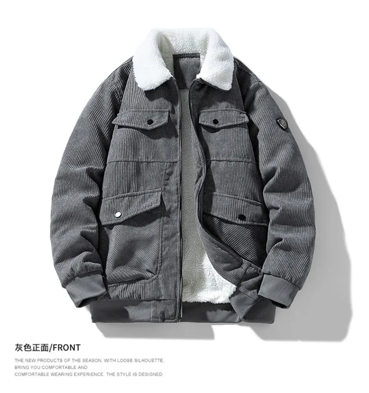 2025 Winter Collar Corduroy Jacket for Men, Casual, Comfortable, Loose, High Quality, Simple, Versatile,and Plush Jacket for Men