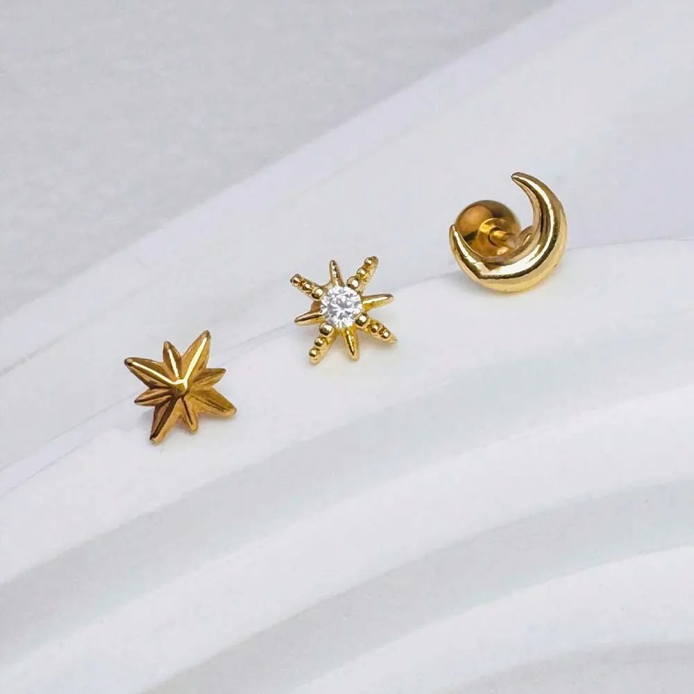 3 Pieces Stainless Steel Star Moon Ear Stud Earrings Set Women Daily Wear Cartilage Piercing Earring Punk Unisex Rock Jewelry
