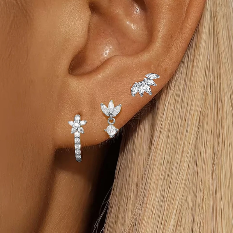 3PCS Flower Huggie Earring Set For Women Tragus Piercing Jewelry Lot Leaf Crystal Cartilage Hoop Earrings Helix Lobe Earing Bulk