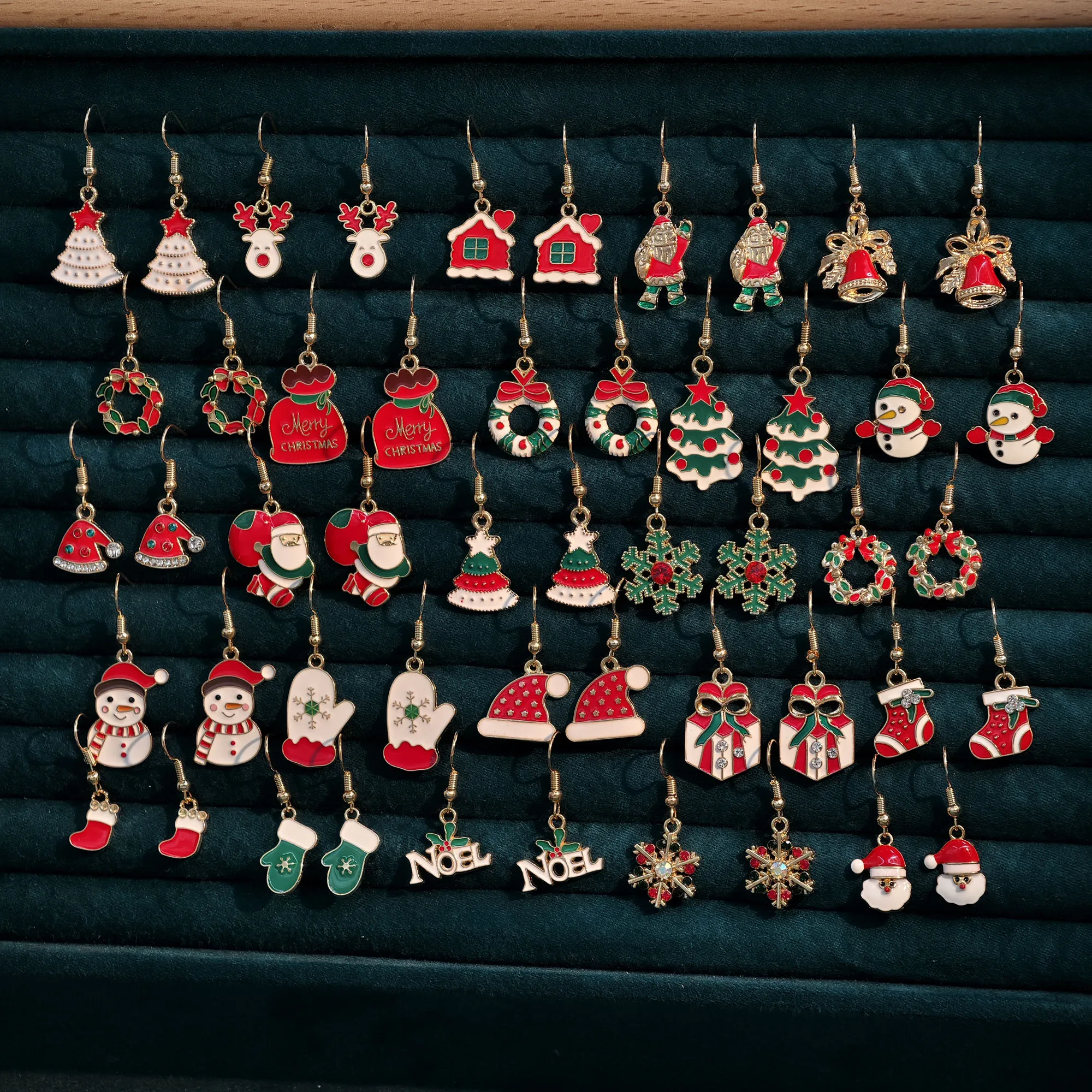 50pcs Cross border New Christmas Earrings Set Santa Snowflake Reindeer Snowman Alloy Oil Drop Earrings Christmas Gift (No Jewelr