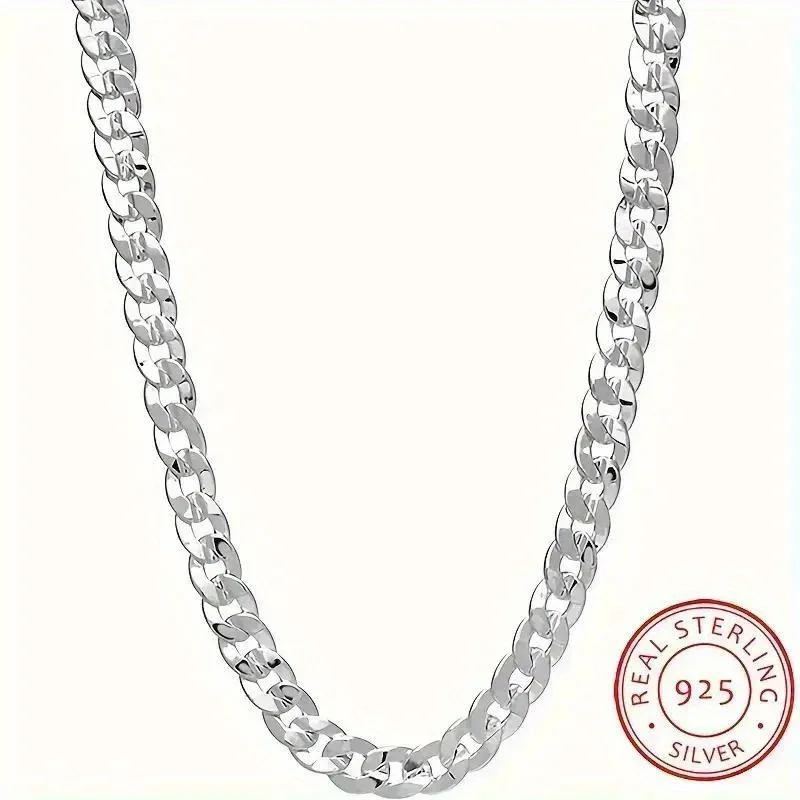 925 Sterling Silver 7mm Cuban Chain Necklace noble charms for women men lady Concave Sideways Design Wedding Jewelry