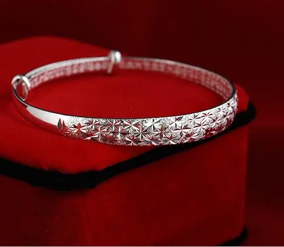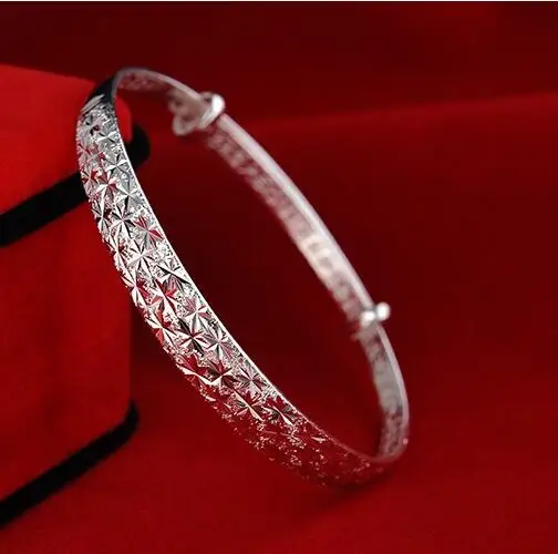 Classic Fashion Silver Color Adjustable Round Bangle Women Plated Bracelet Tibetan Carved Cuff Bangles Wedding Party Accessories