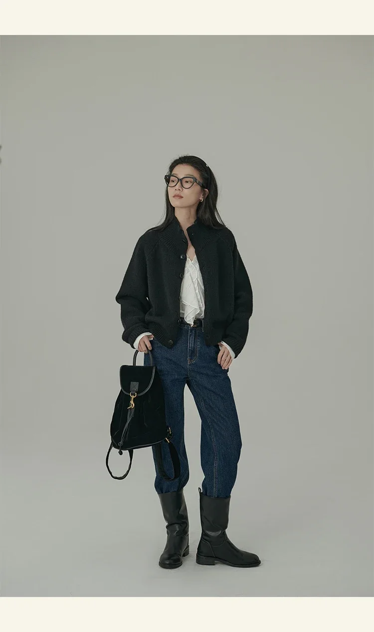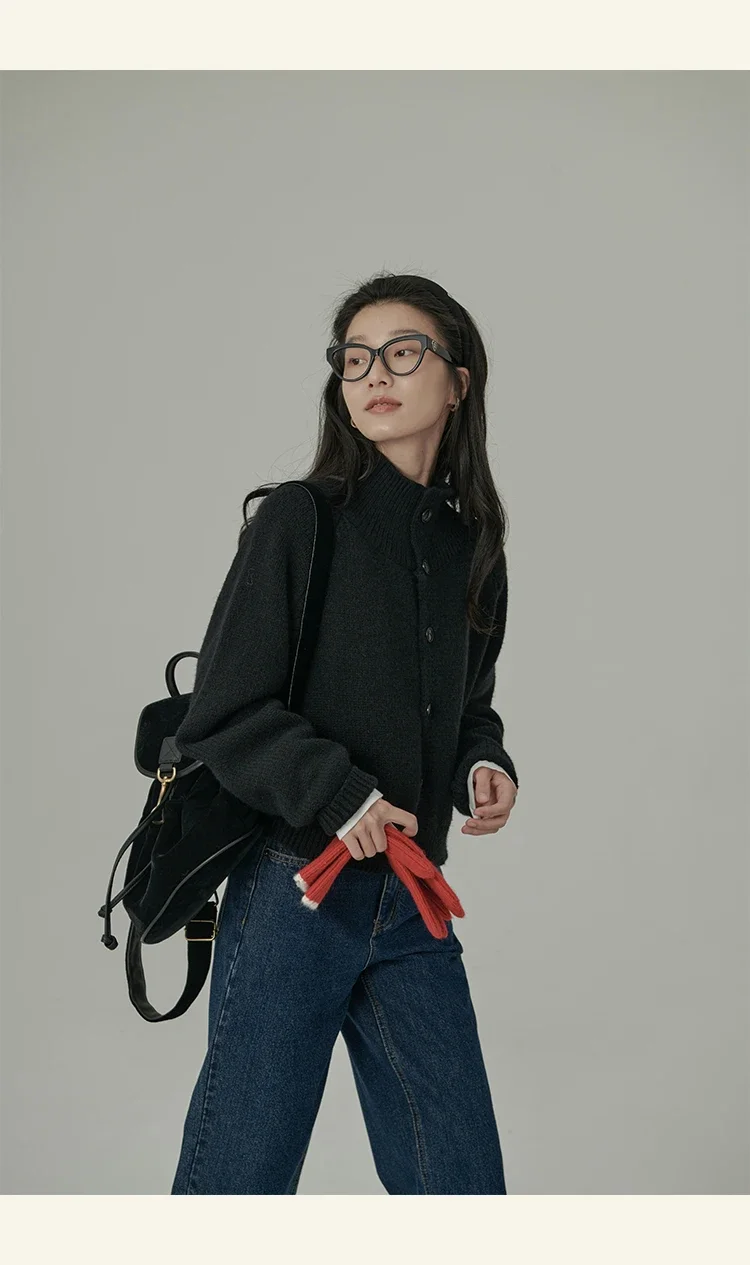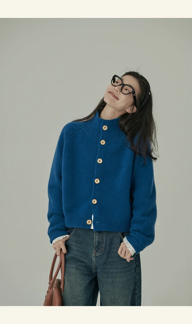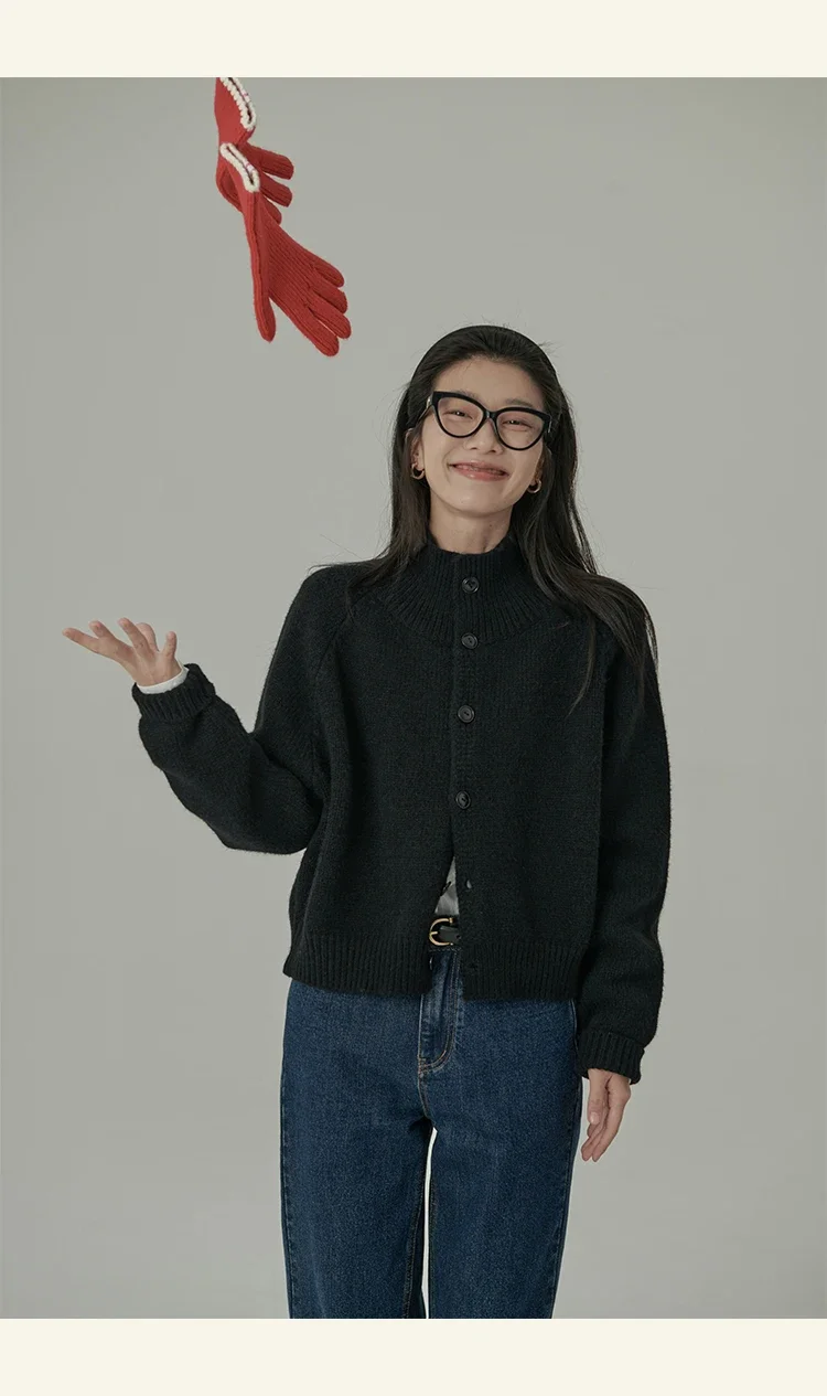 Loose Stand-up Collar Cardigan Women Retro Blue Single Breasted Casual Soft Knitwear Sweater Black Fashion Cardigan for Women