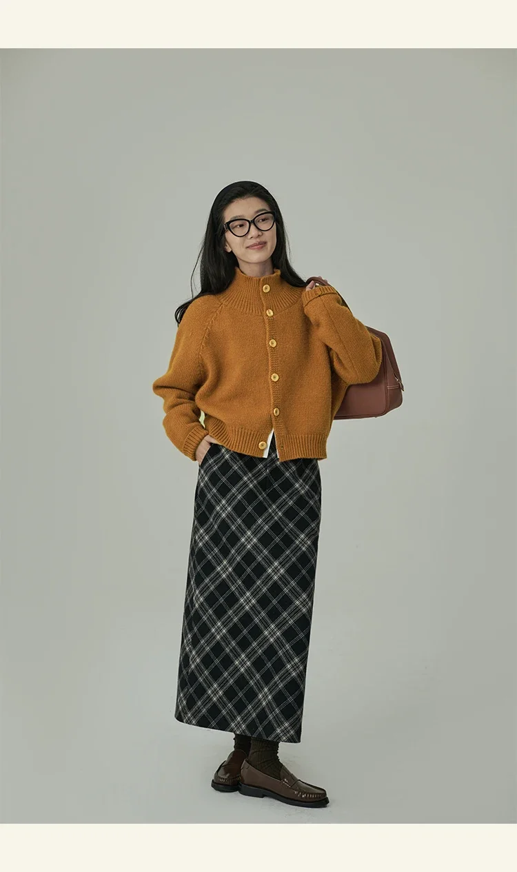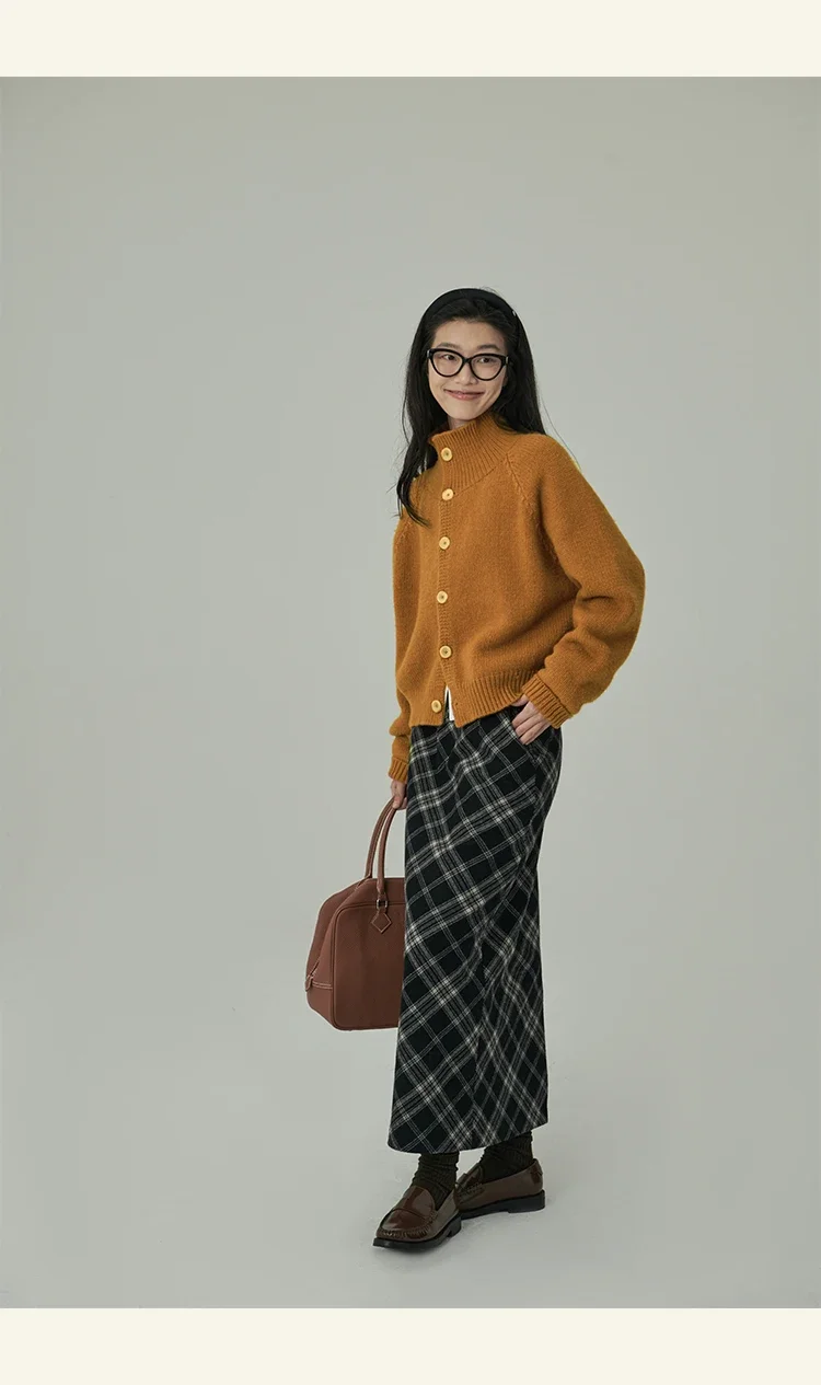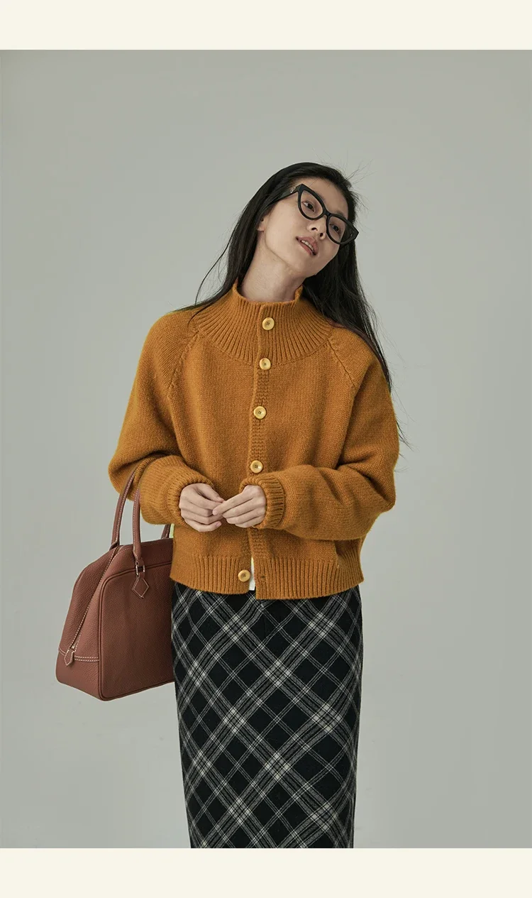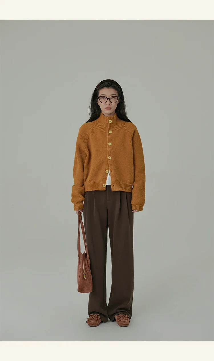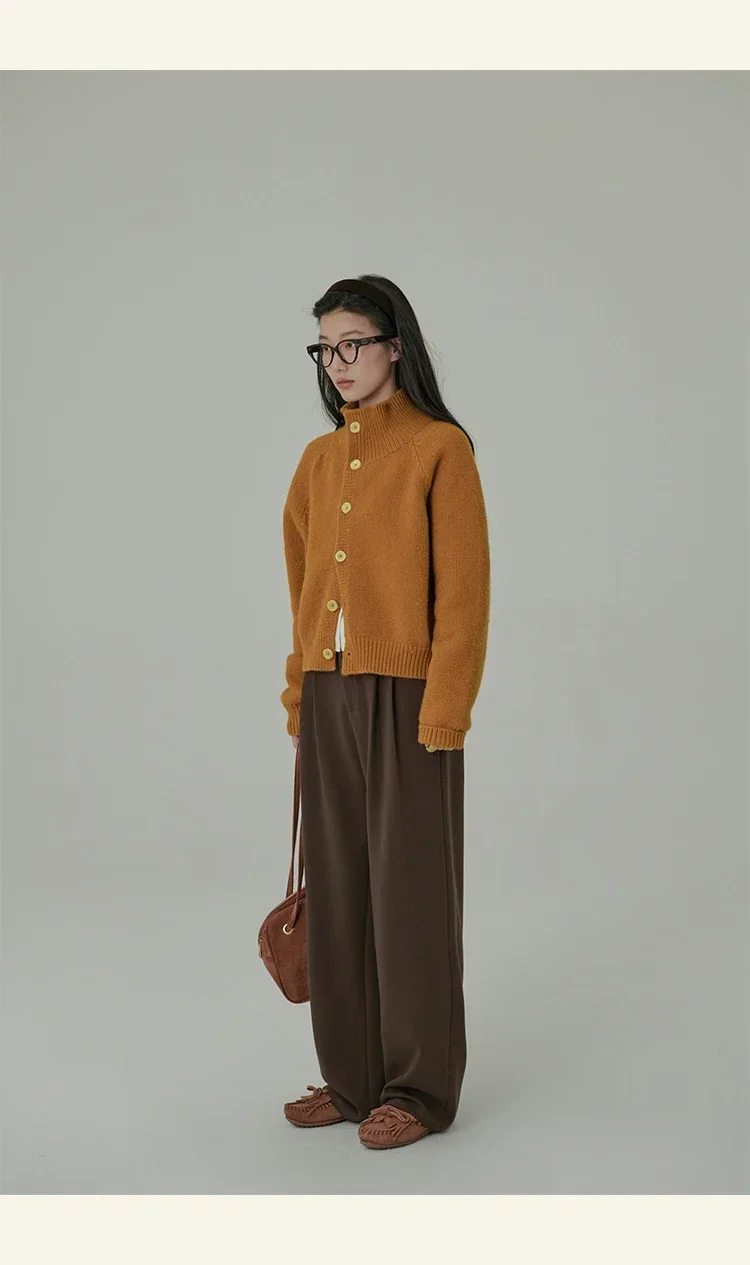 Loose Stand-up Collar Cardigan Women Retro Blue Single Breasted Casual Soft Knitwear Sweater Black Fashion Cardigan for Women
