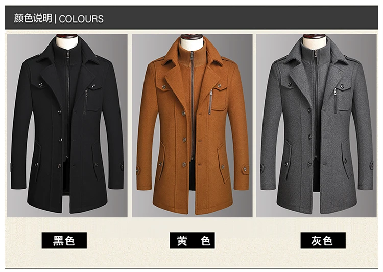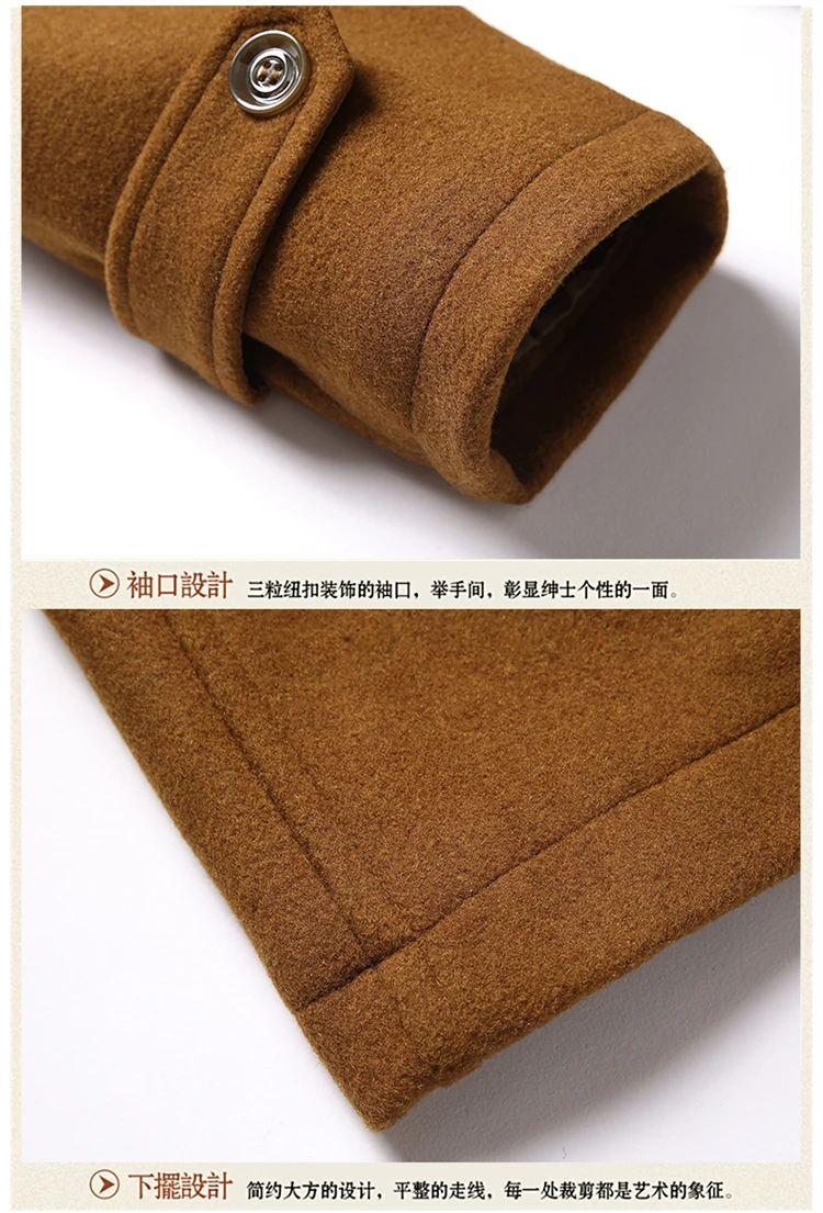 Men's Double Collar Wool Coat Fashion Handsome Autumn Winter Business Style High Quality Middle-aged Men's Fashion Woolen Coat