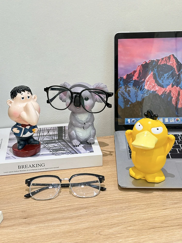 Miniso Anime Peripheral Cute Pokémon Psyduck Ornaments Glasses Frame Supplies Eye Display Stand Decorative Craft Stand Gifts