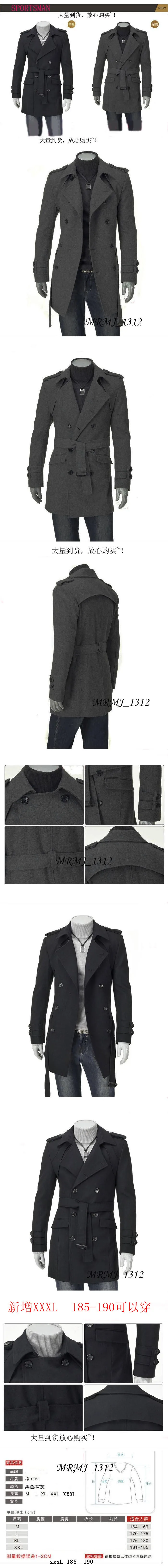 New Autumn Winter Men's Korean Woolen Overcoats Fashion Slim Double Breasted Lace-up Trench Coats Mid-length Windbreaker Jackets