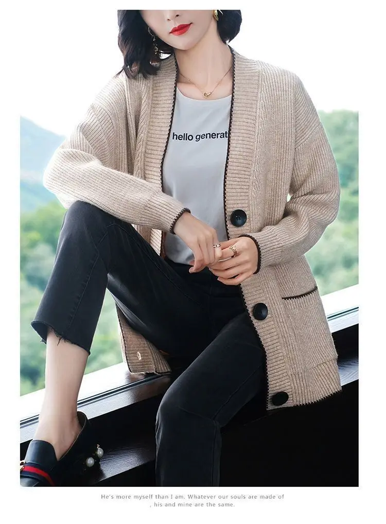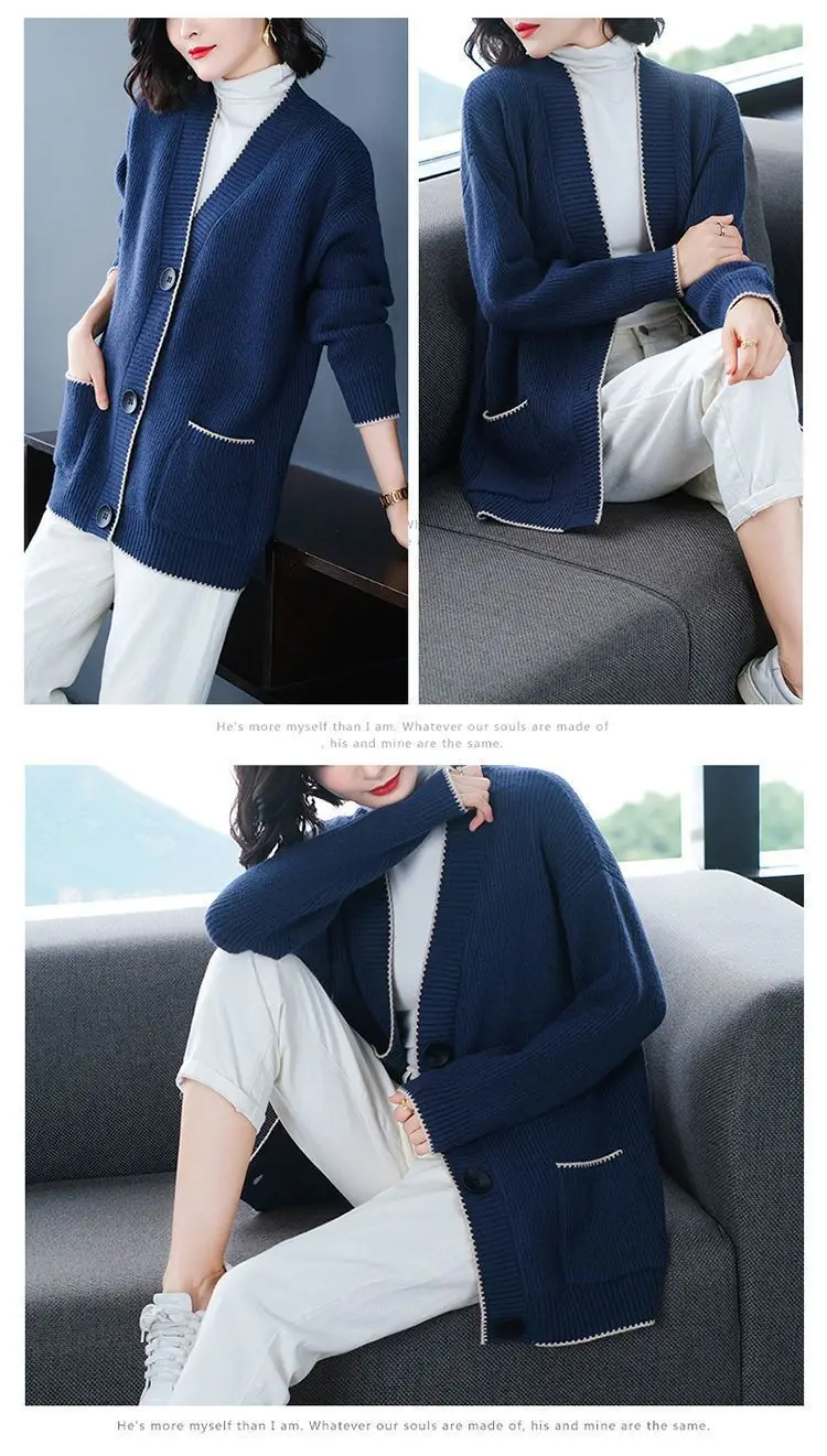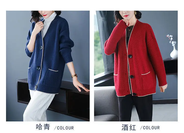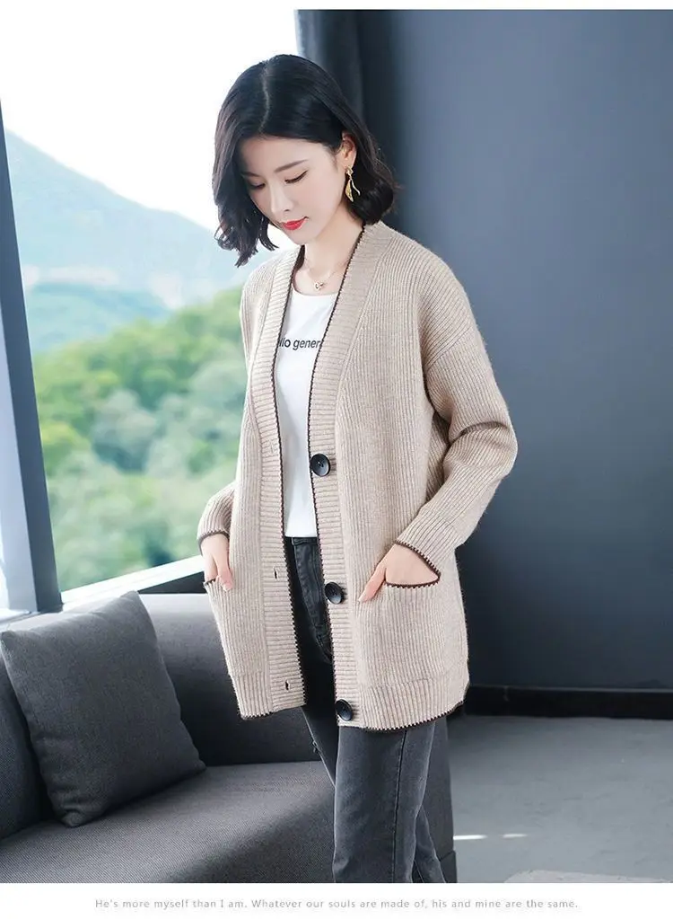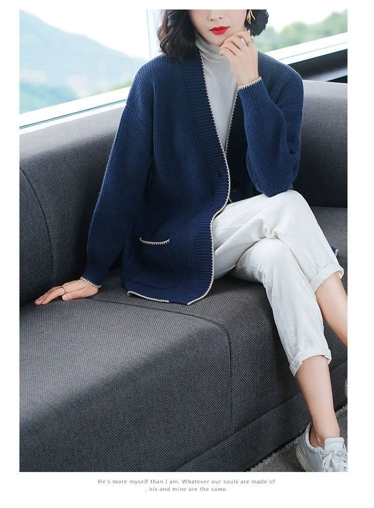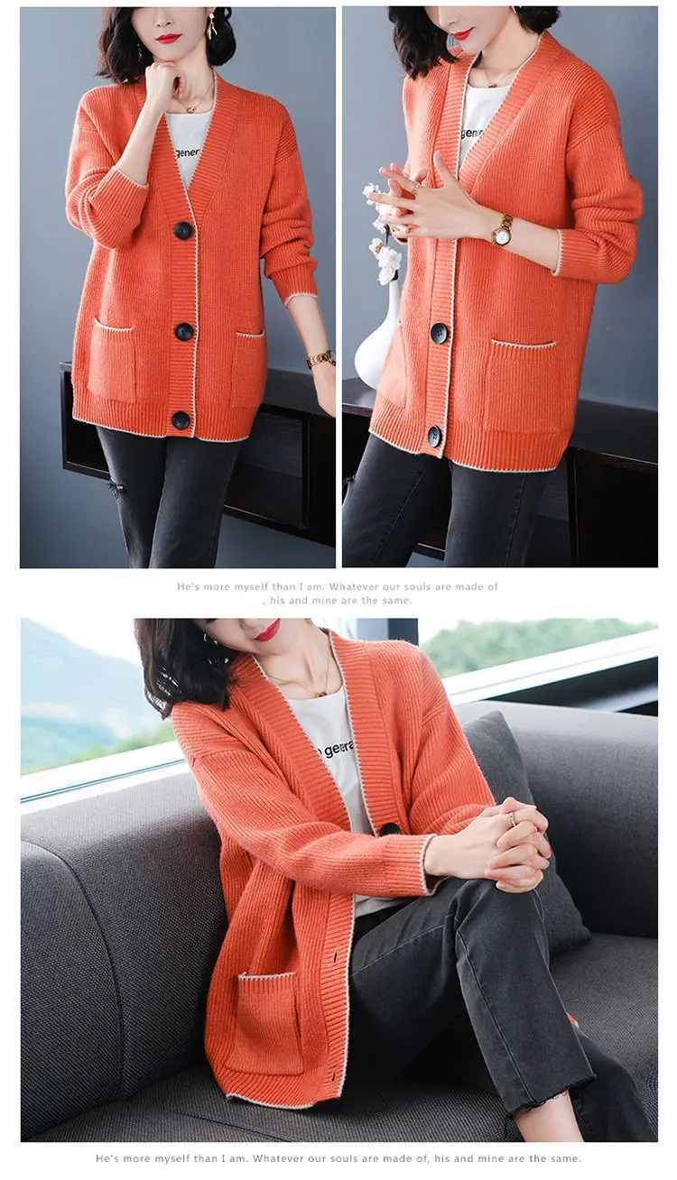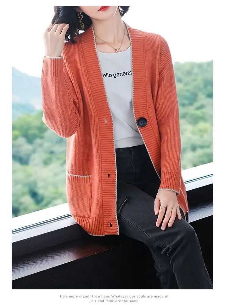 Solid Color Button All-match Sweaters Cardigan Women's Clothing Autumn Winter Korean Loose V-Neck Fashion Pockets Knitted Tops