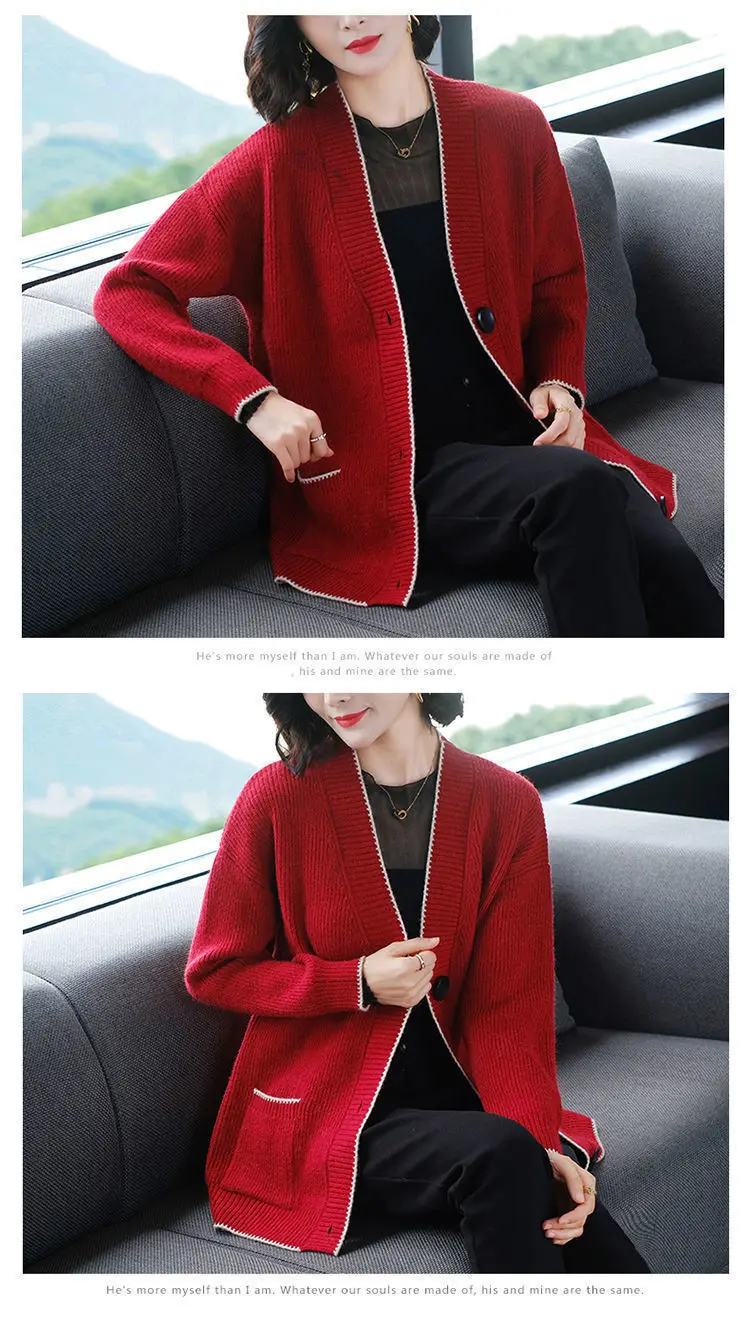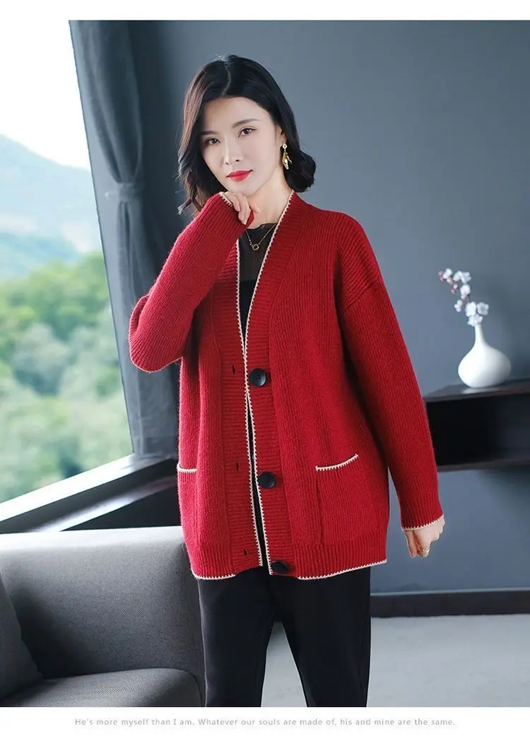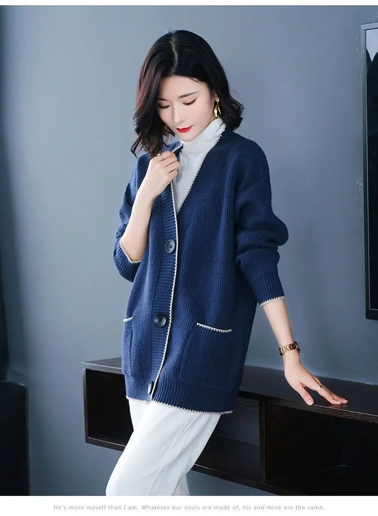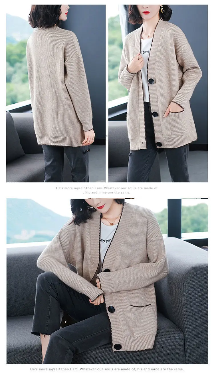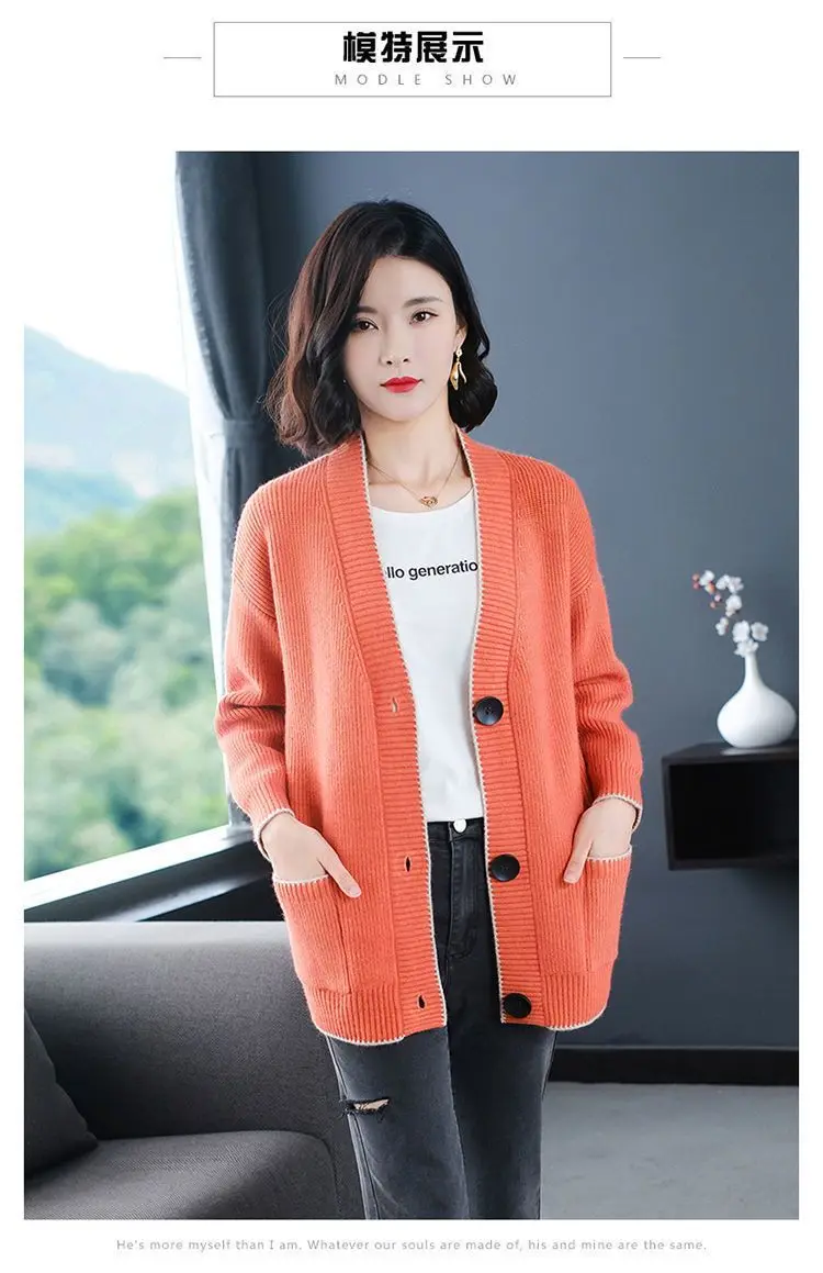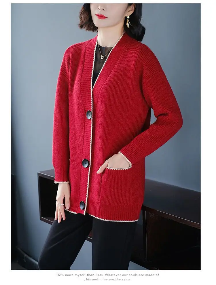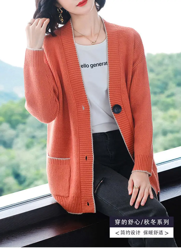 Solid Color Button All-match Sweaters Cardigan Women's Clothing Autumn Winter Korean Loose V-Neck Fashion Pockets Knitted Tops