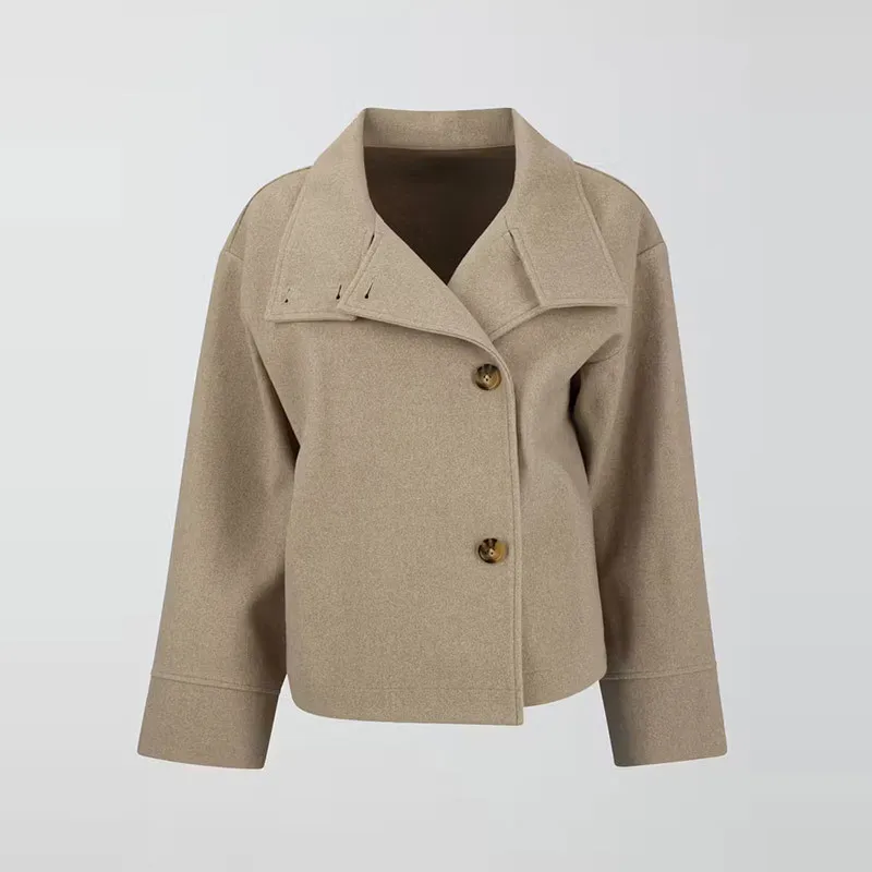 Stand Collar Women Winter Woolen Coats 2025 Spring Single Breasted Loose Female Long Sleeve Jacket Office Lady Street Short Coat