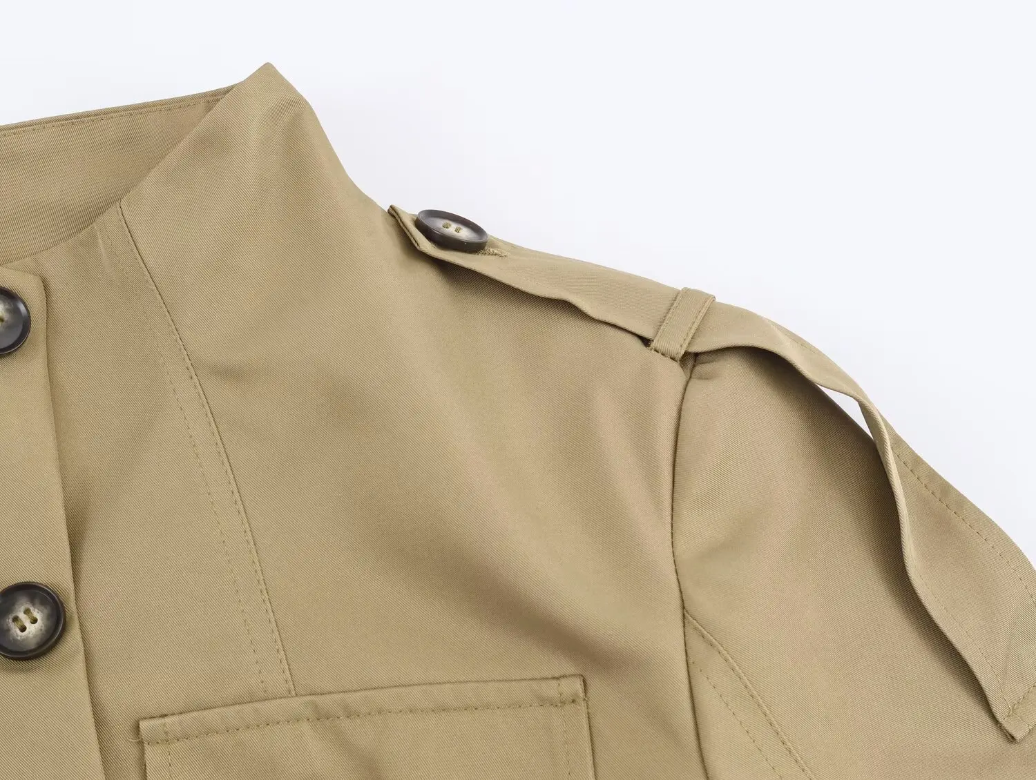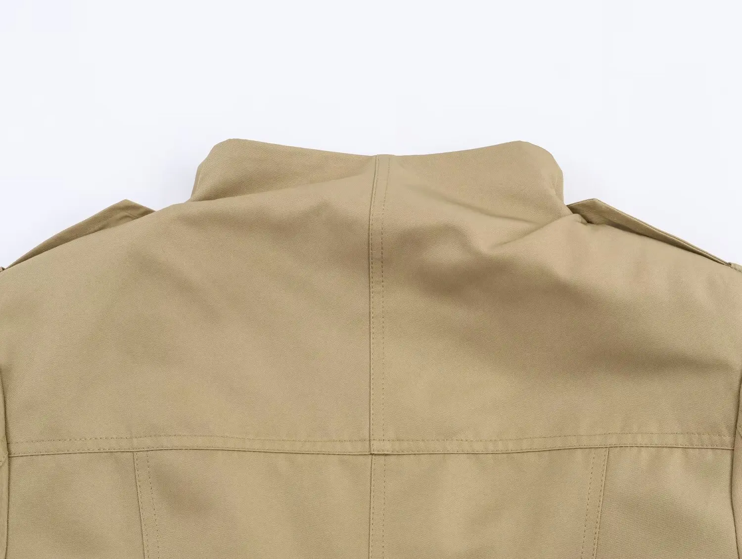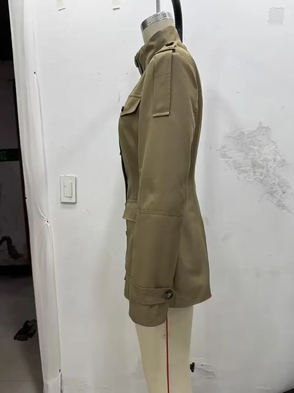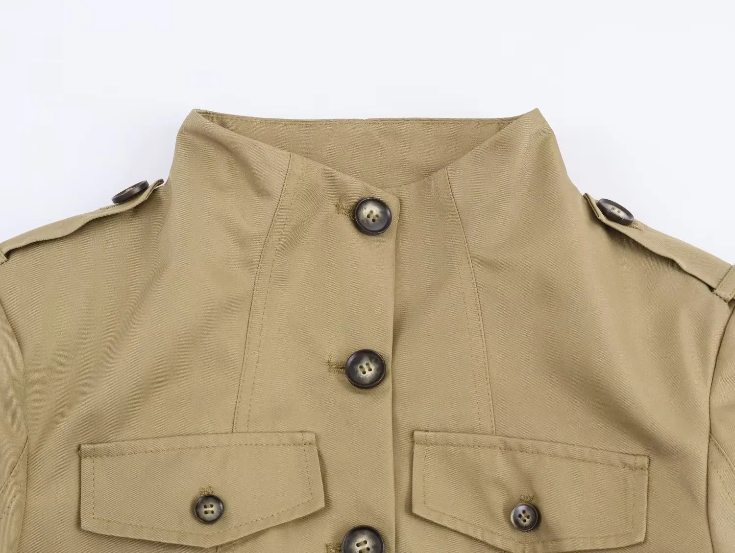 Tidalyf 2025 New Women Casual Jacket High Neck Single Button Shoulder Strap Cuff Strap Pocket Design Chic Fashion Autumn