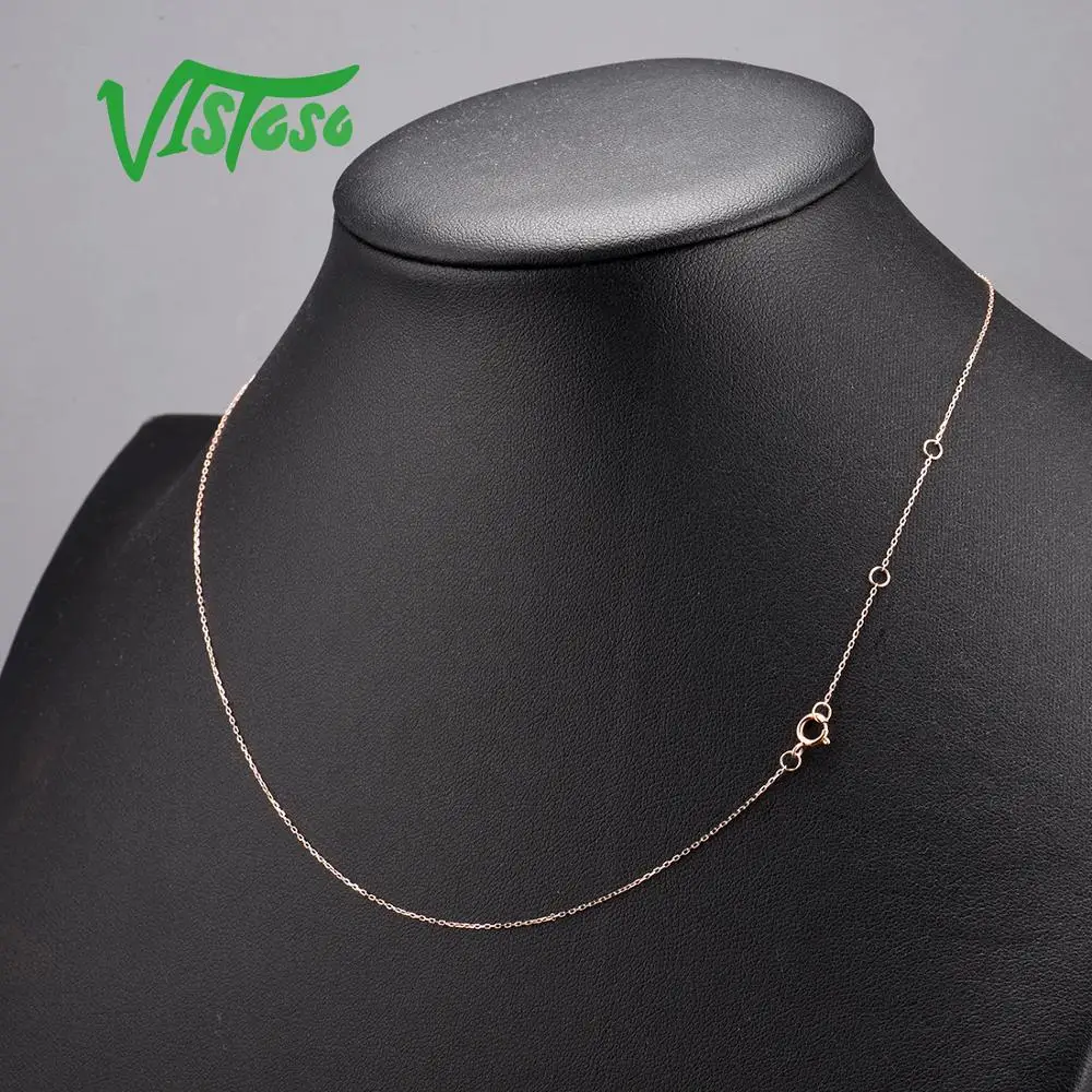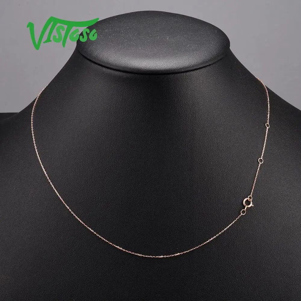 VISTOSO Gold Necklace For Women Genuine 14K 585 Rose/Yellow/White Gold Necklace Chain 42cm Fine Jewelry