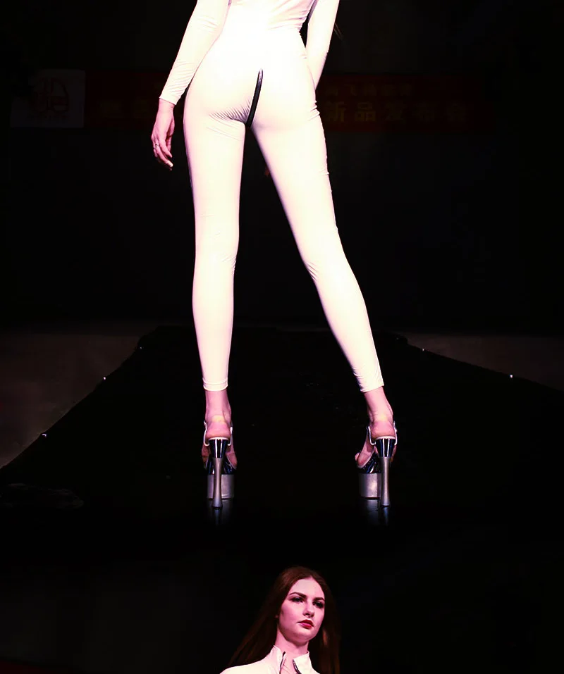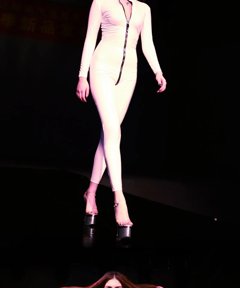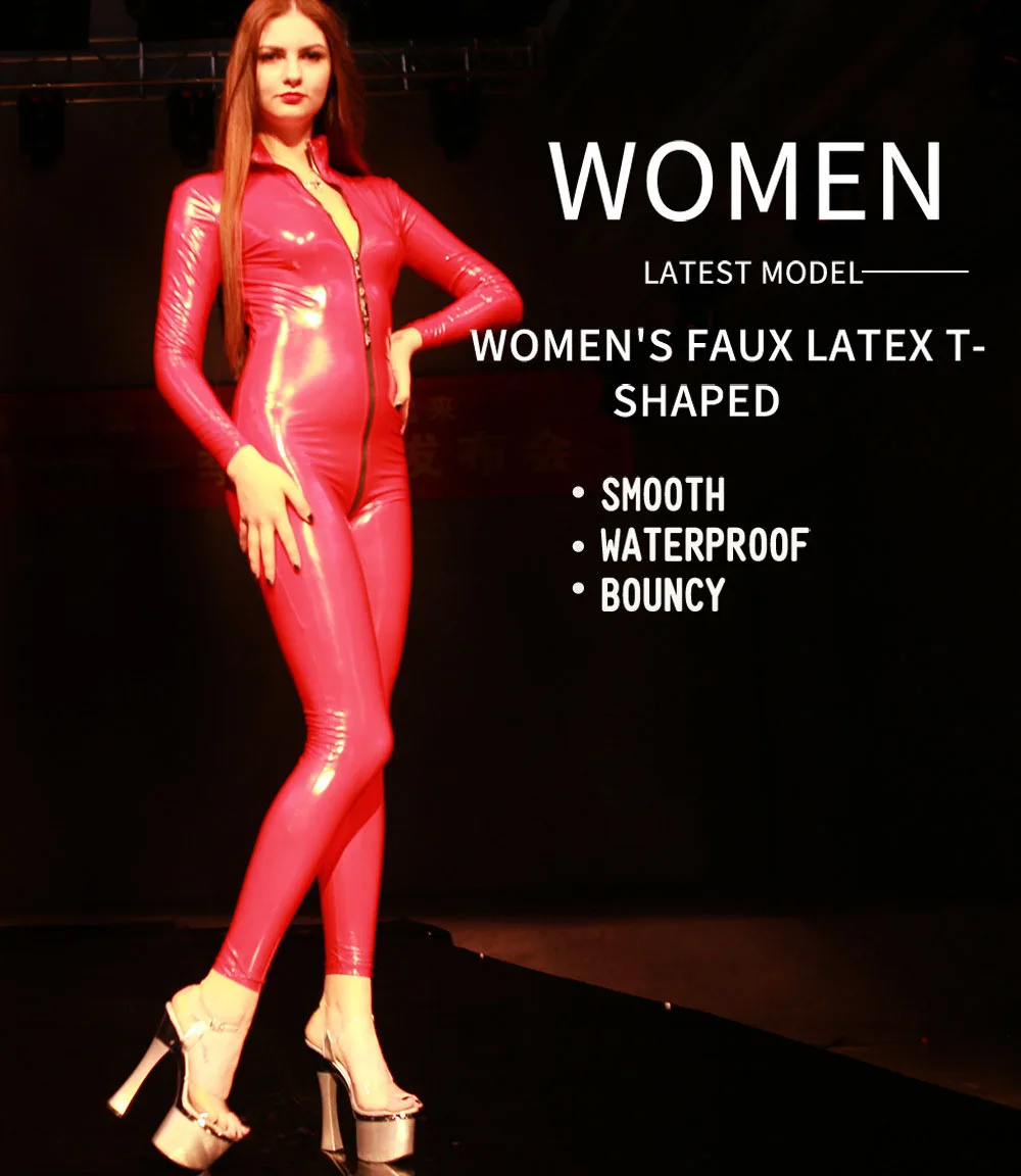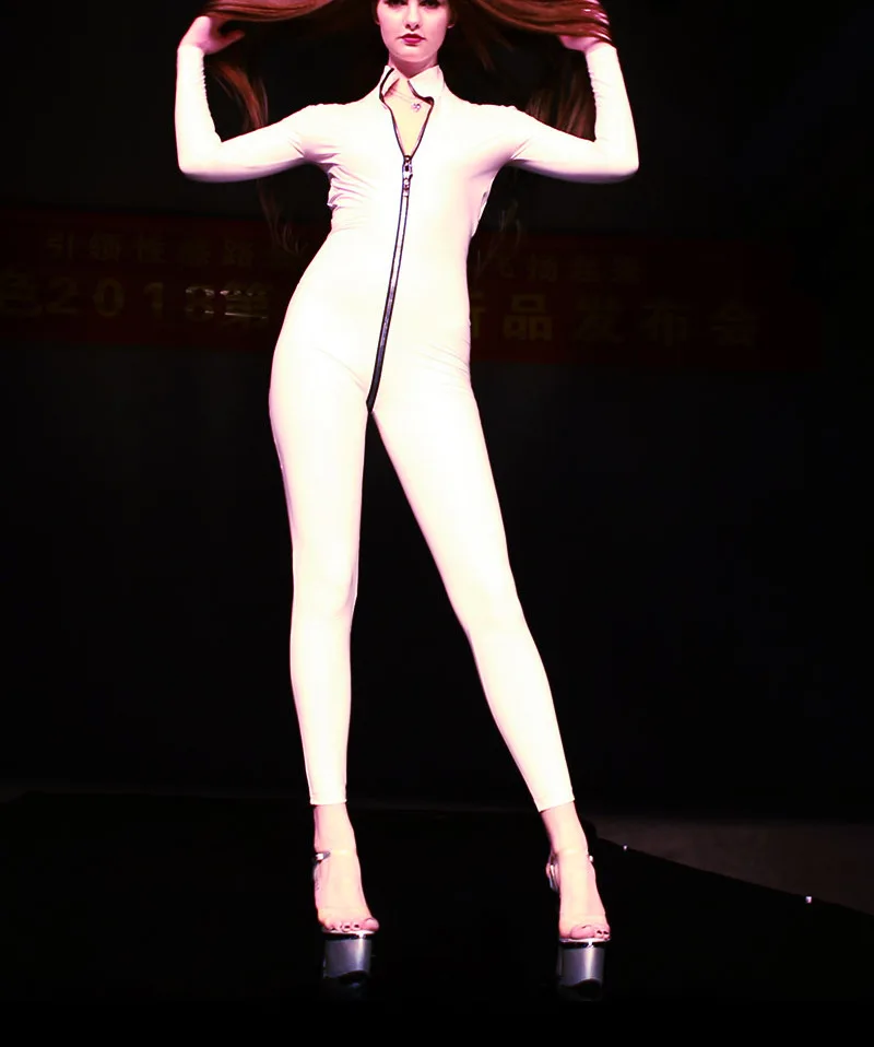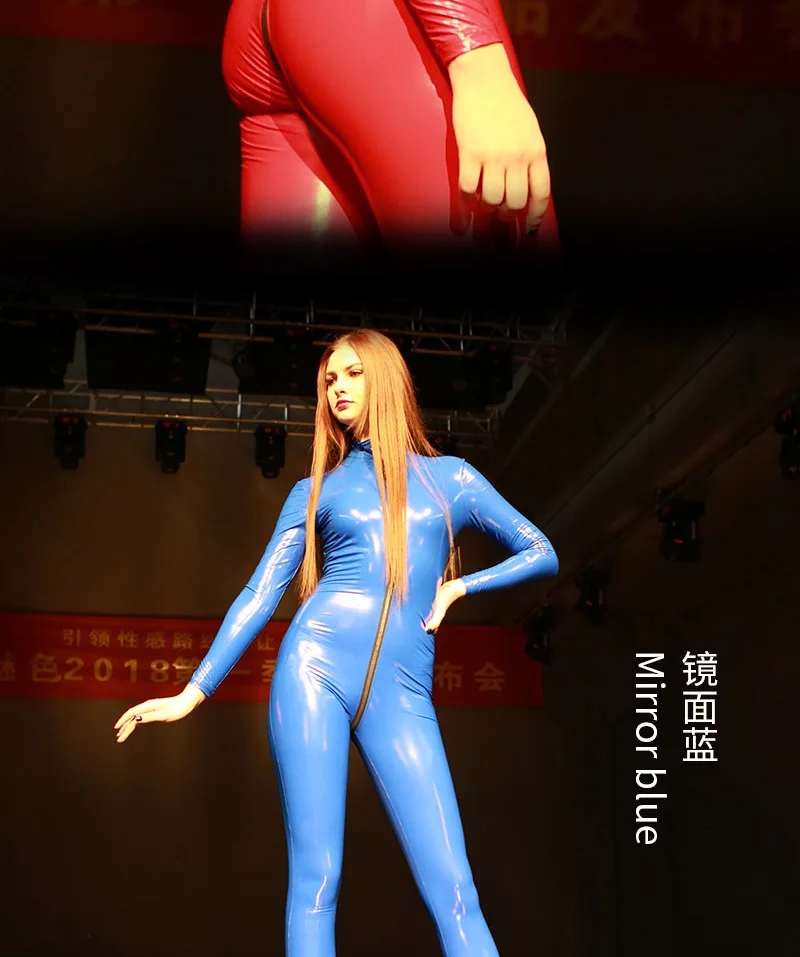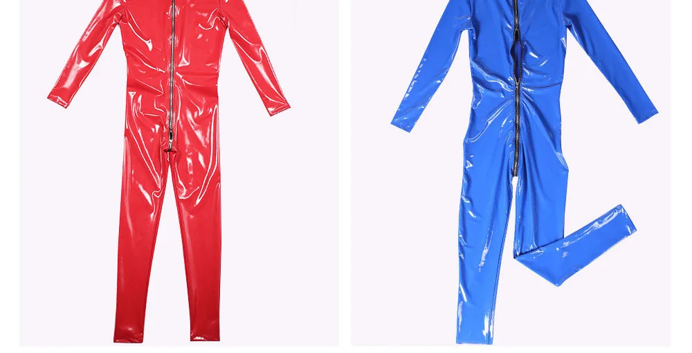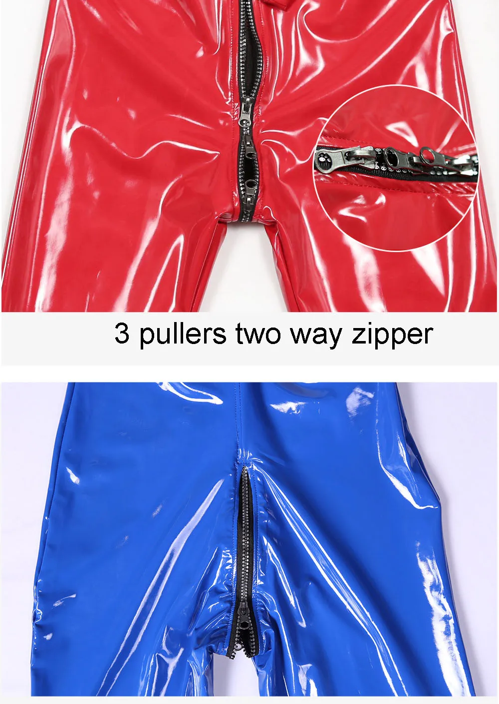 Wet Look PVC Catsuit Shiny PU Leather Cosplay Leotard Jumpsuit Two Way Zipper Open Crotch Bodysuit Tights Sexy Clubwear Conjoined
