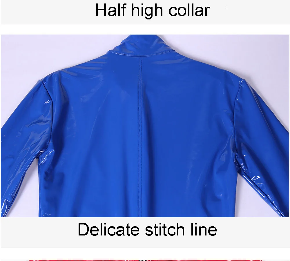 Wet Look PVC Catsuit Shiny PU Leather Cosplay Leotard Jumpsuit Two Way Zipper Open Crotch Bodysuit Tight Sexy Clubwear Conjoined