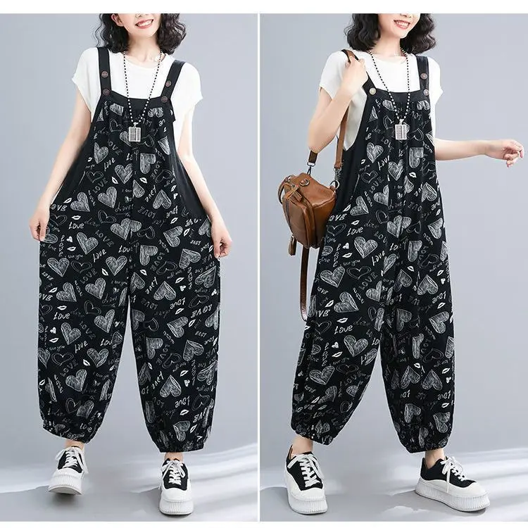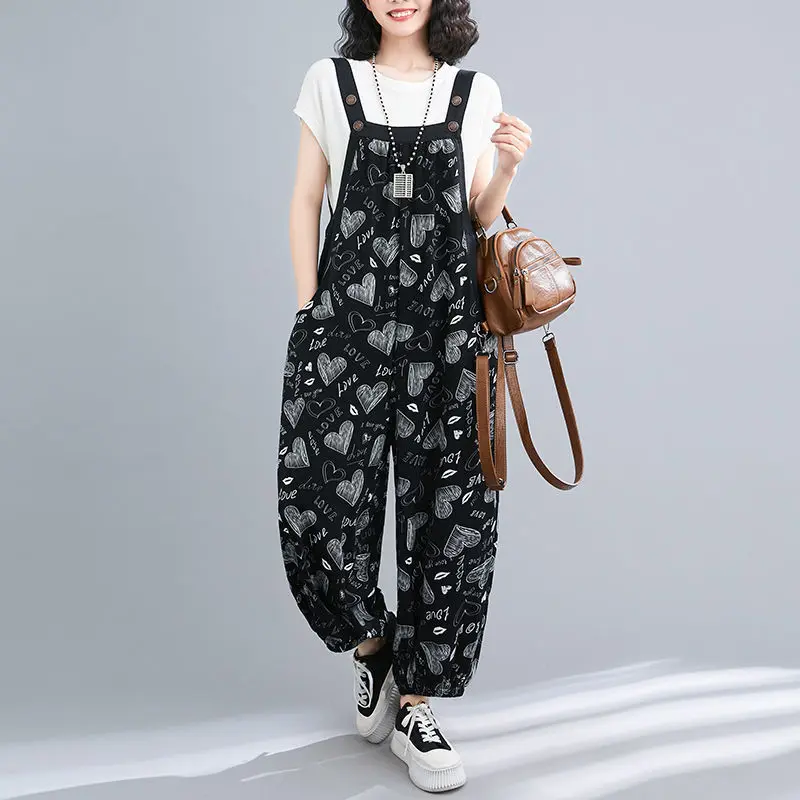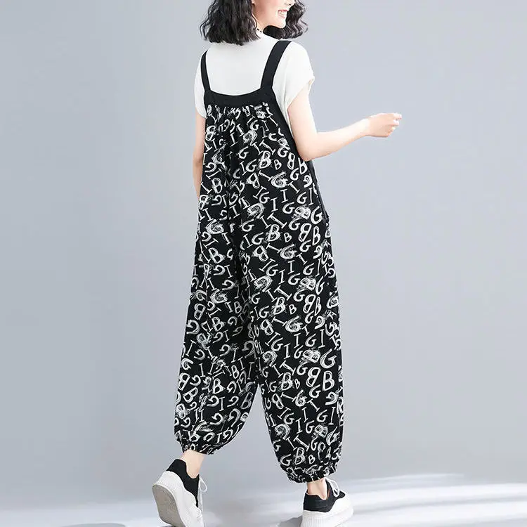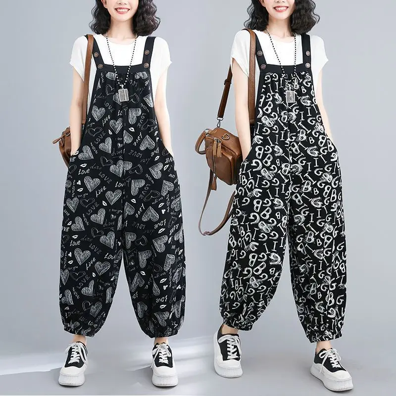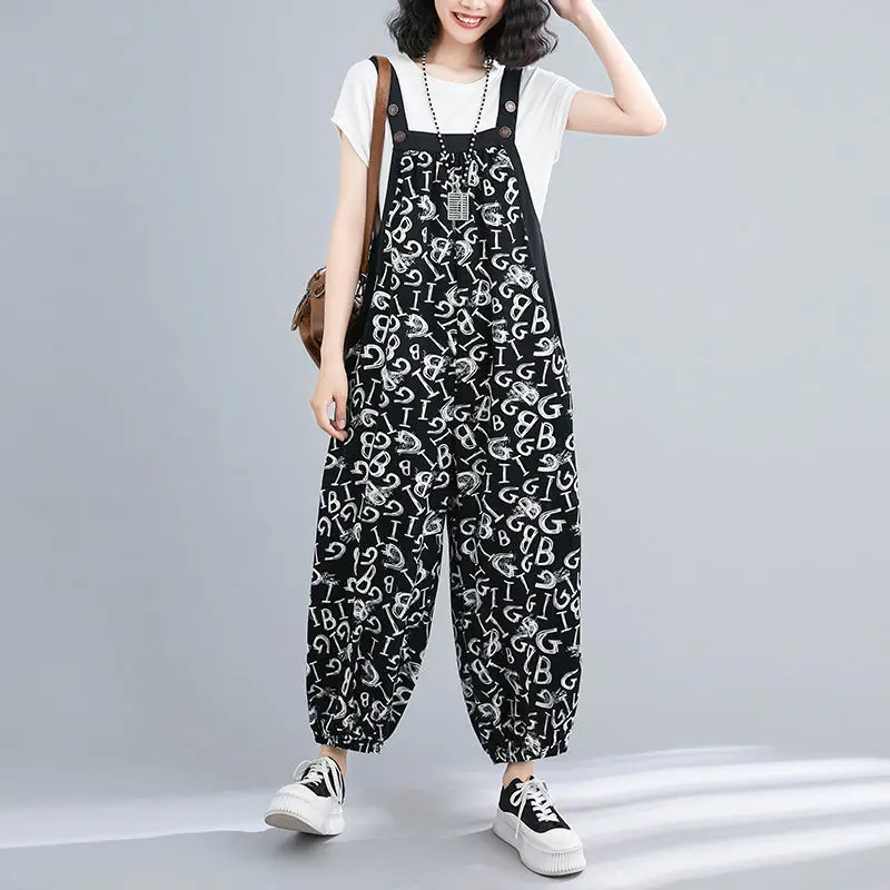 Women's Clothing Spring Autumn Summer Geometric Letter Printing Pockets Button High Waisted Loose Jumpsuits Vintage Pants