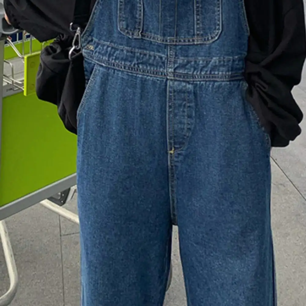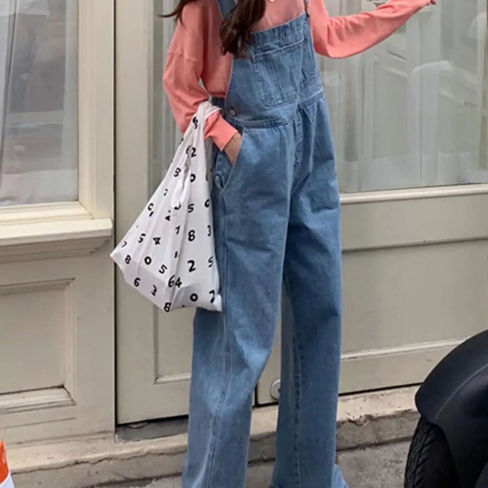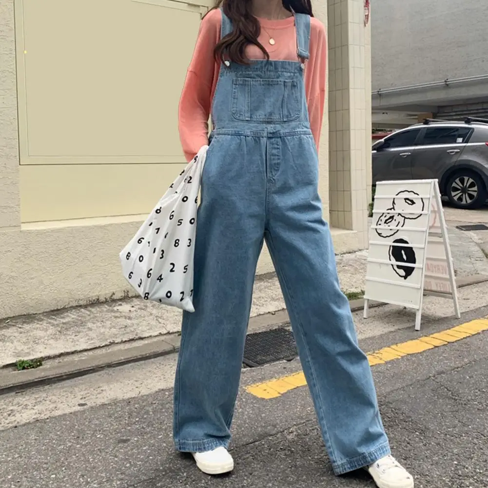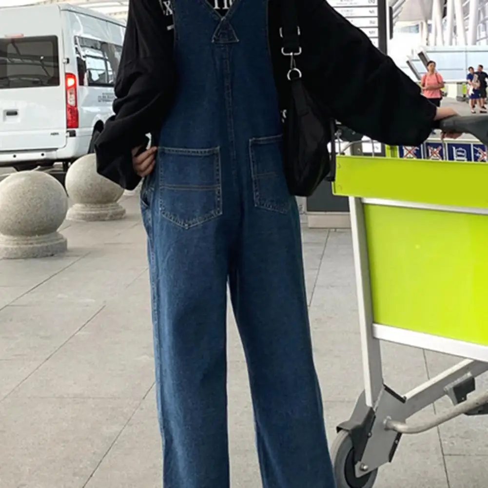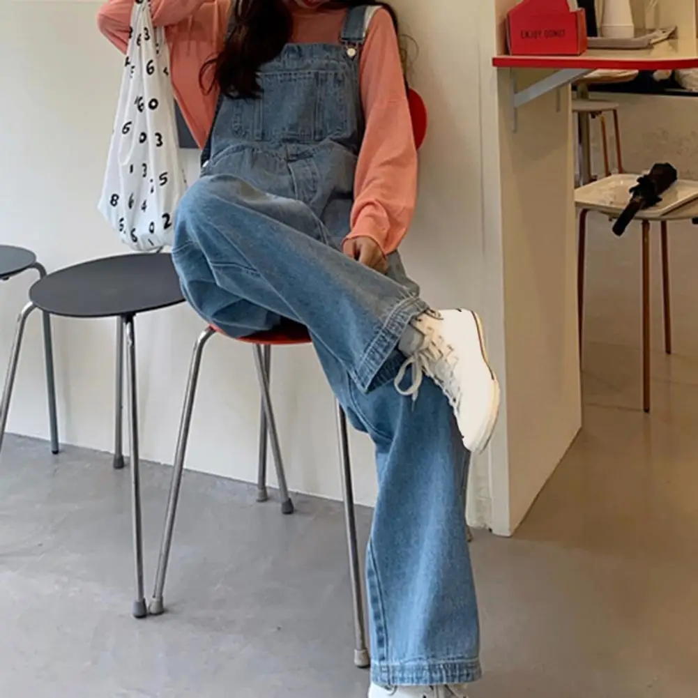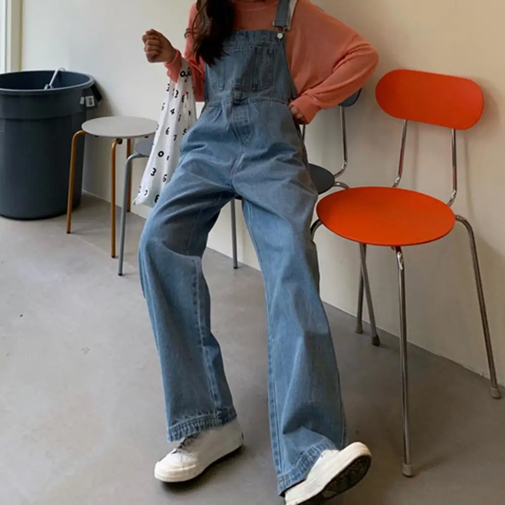 Women's Denim Bib Overalls Wide Leg One Piece Jean Jumpsuits with Adjustable Strap Casual Baggy Jeans Pants with Pockets